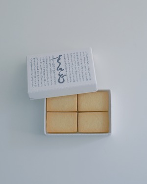 洋酒に漬けたチェリーと、チョコレートやリキュールをたっぷりと使用したクリームを、発酵バターの香るシンプルなサブレで挟んだサンド菓子。1箱に4サンド入っています。