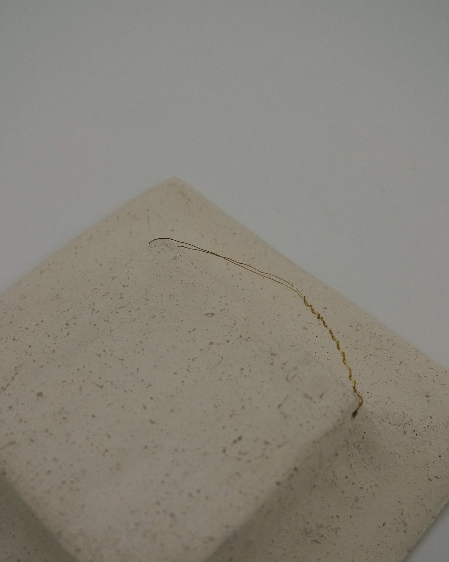 あわいもんの特注として、お皿の裏に小さな穴を開けていますので、ここに糸など通せます。今回のご注文に限り、細い針金を通した状態でお届けいたします。
