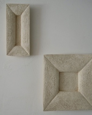 枯れた肌のような陶の表情が壁を静かに彩ります。