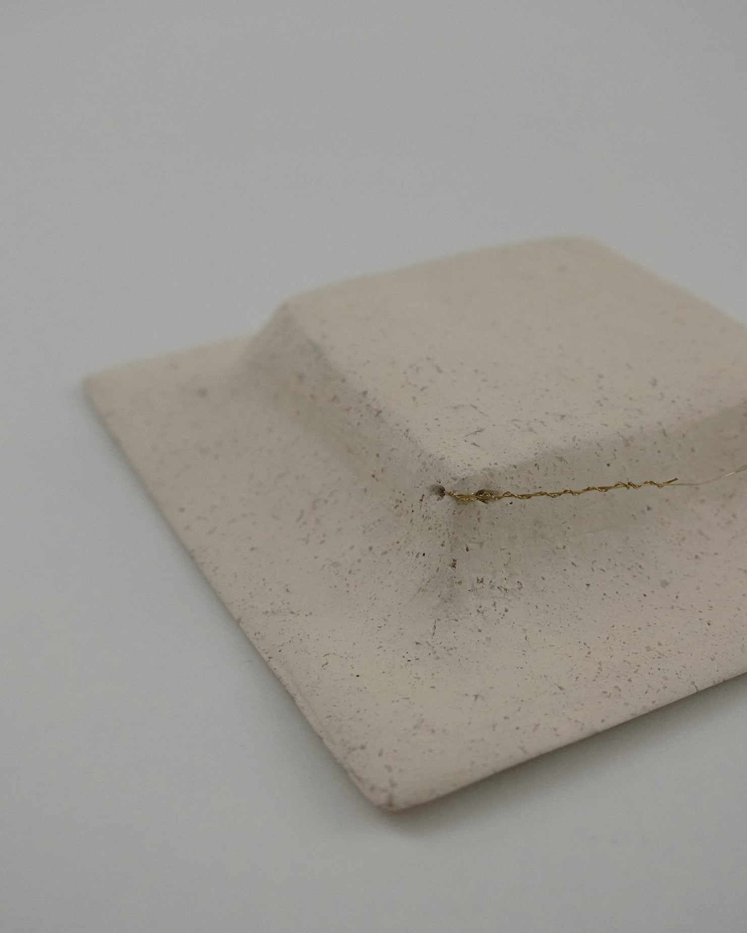 あわいもんの特注として、お皿の裏に小さな穴を開けていますので、ここに糸など通せます。今回のご注文に限り、細い針金を通した状態でお届けいたします。