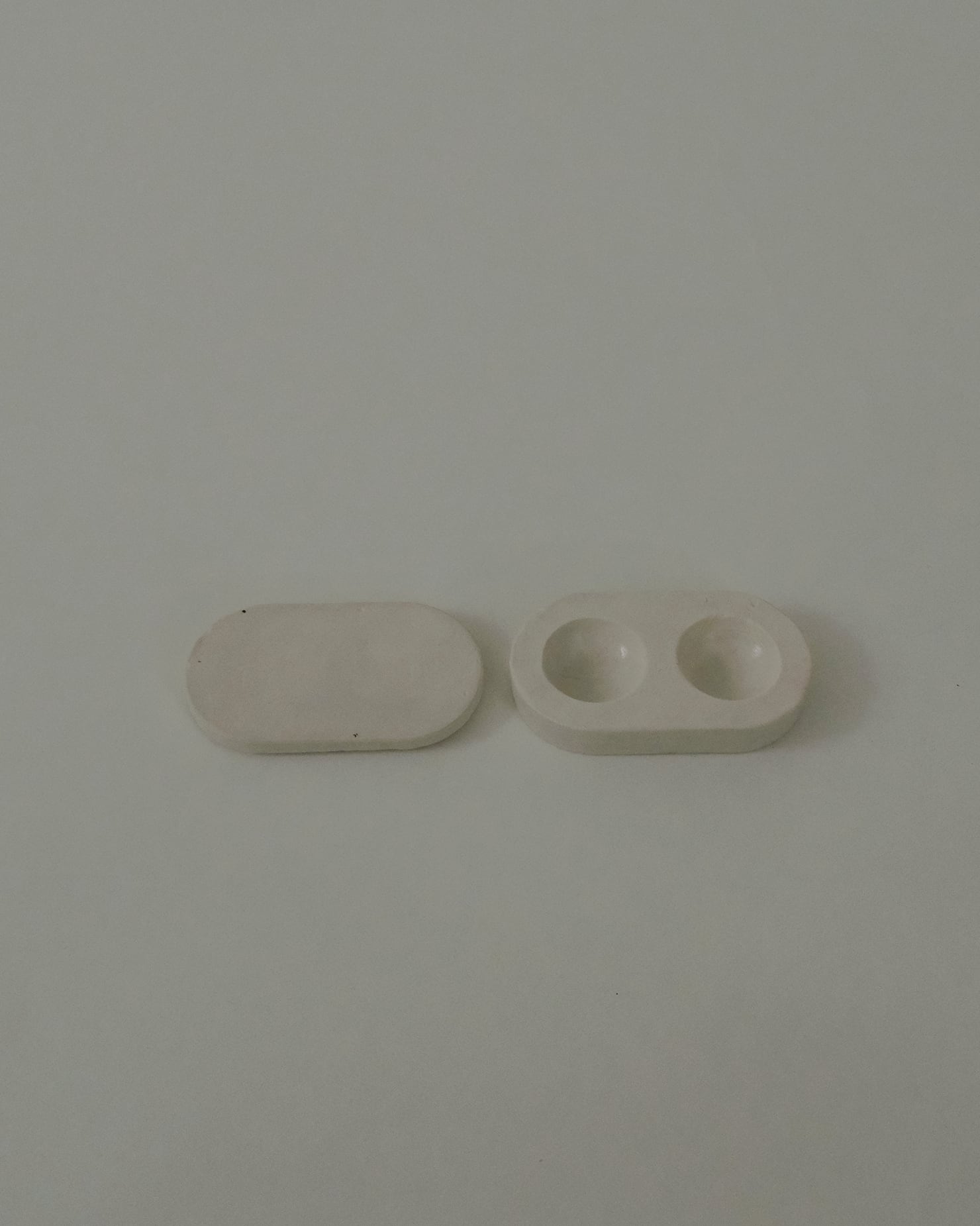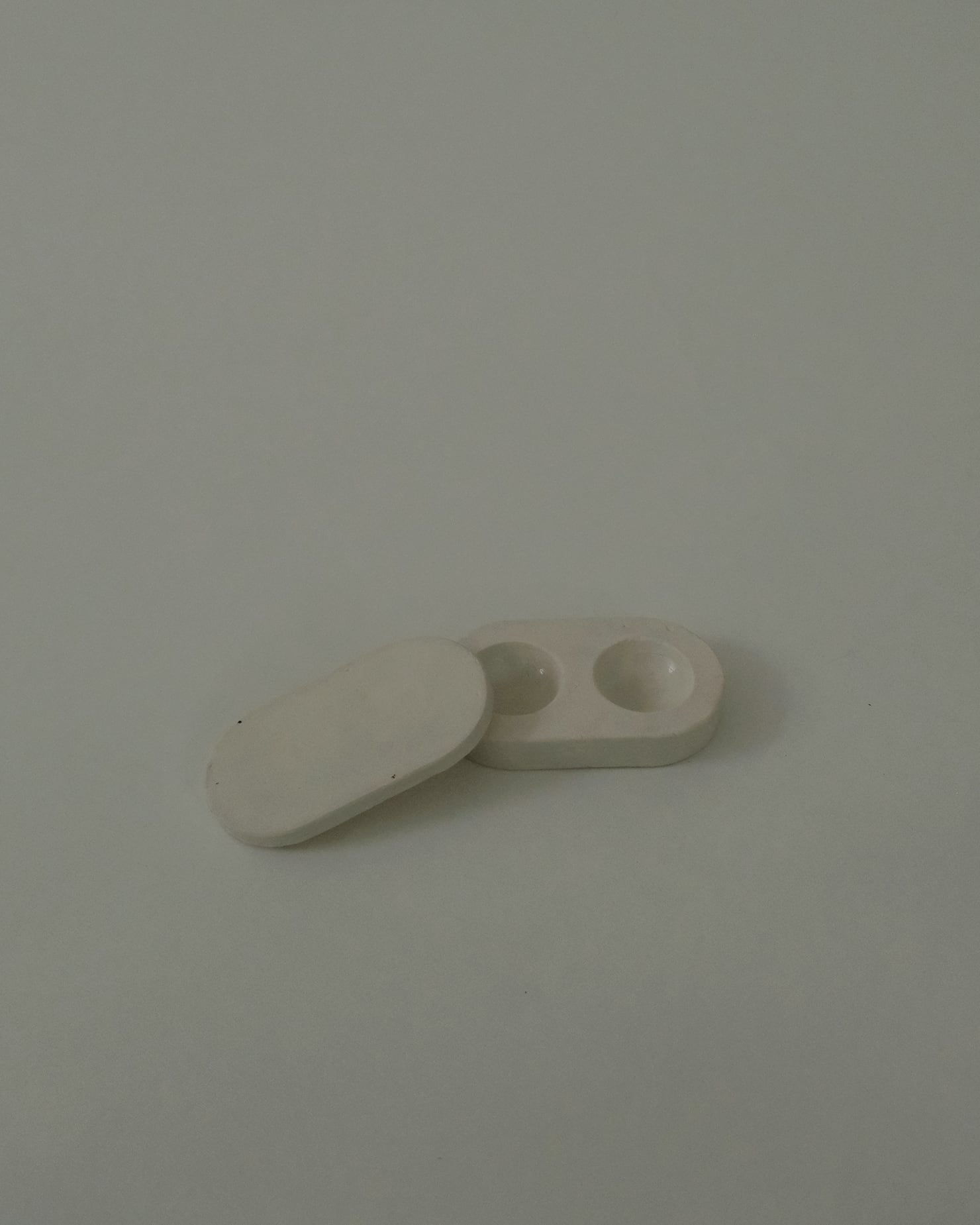 その思い出と今を天称にかけるような装置をイメージしてつくられる「しまい匣」は、とても小さくて、蓋を開ければ対照になった浅いくぼみが二つあります。そのくぼみに思い出と今があると見立て、比較しながらに老への想いを馳せても良し、リングのような小さきものを入れても良し。