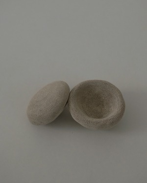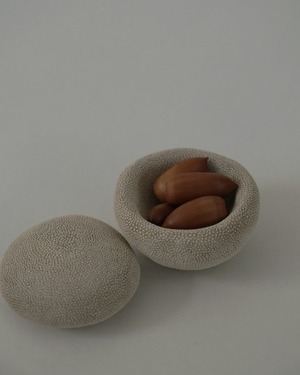 自然物と人工物の間ような模様を一点一点手で作り、唯一無二の表現を陶芸に落とし込む植田佳奈による、はじめての「蓋物」作品です。