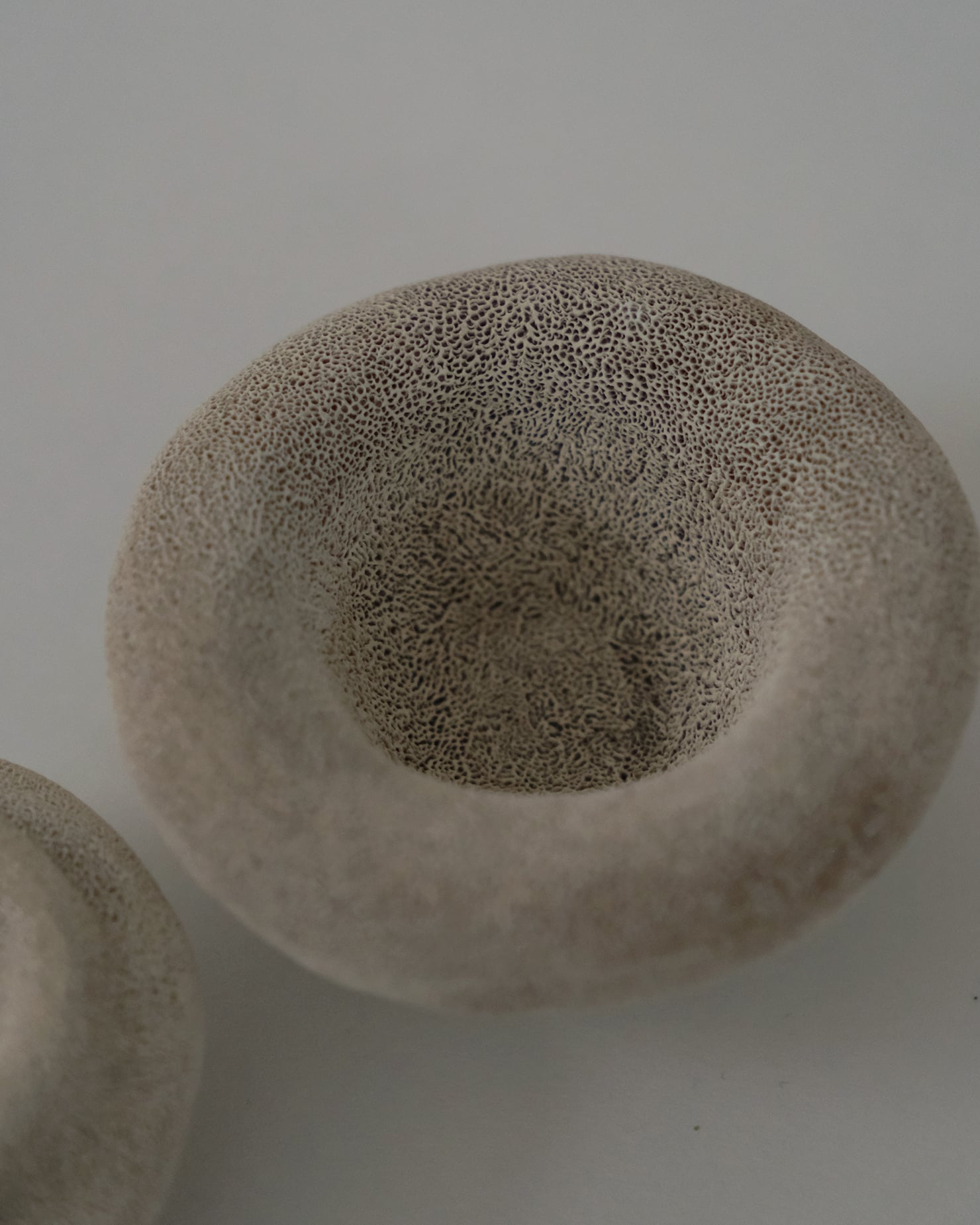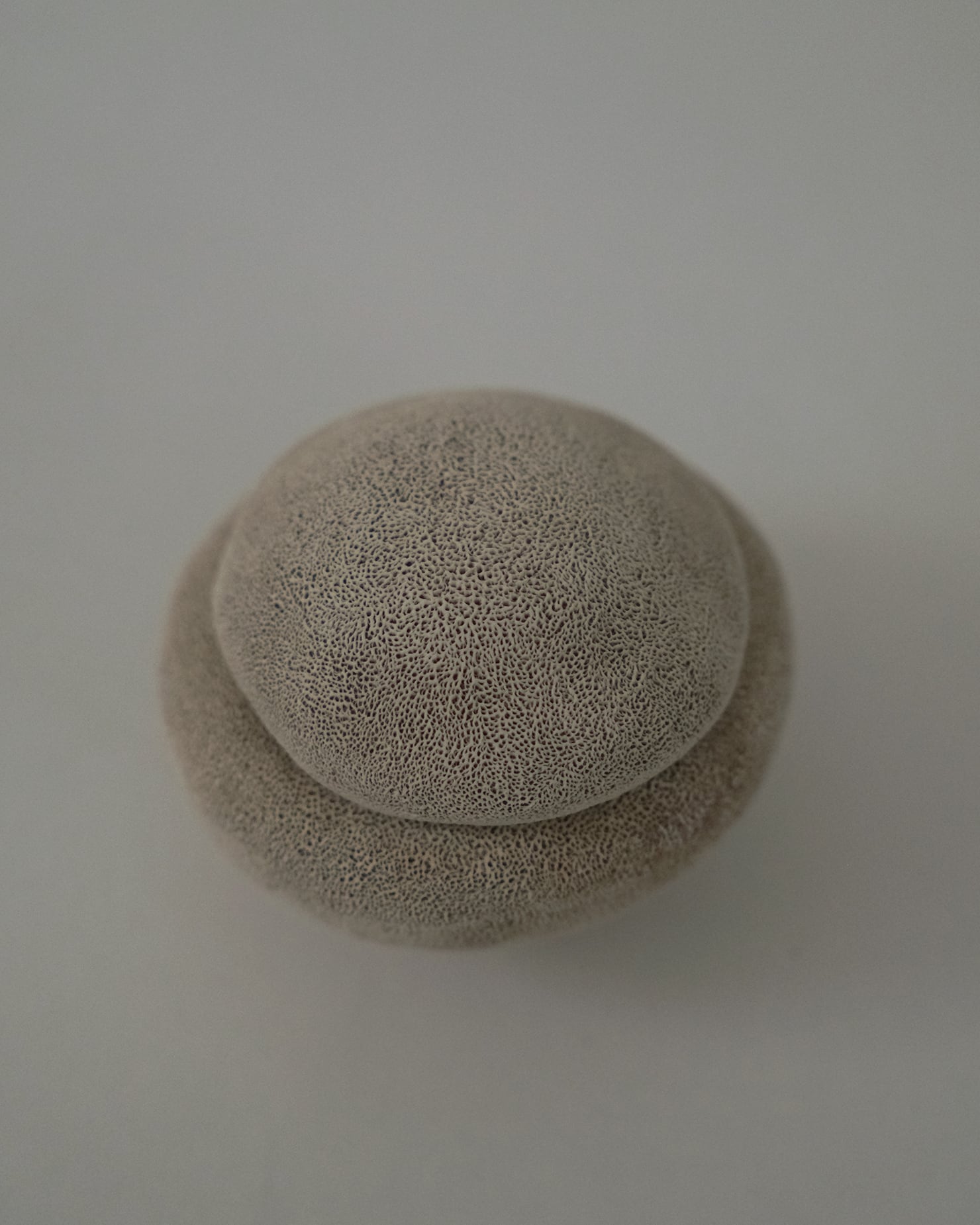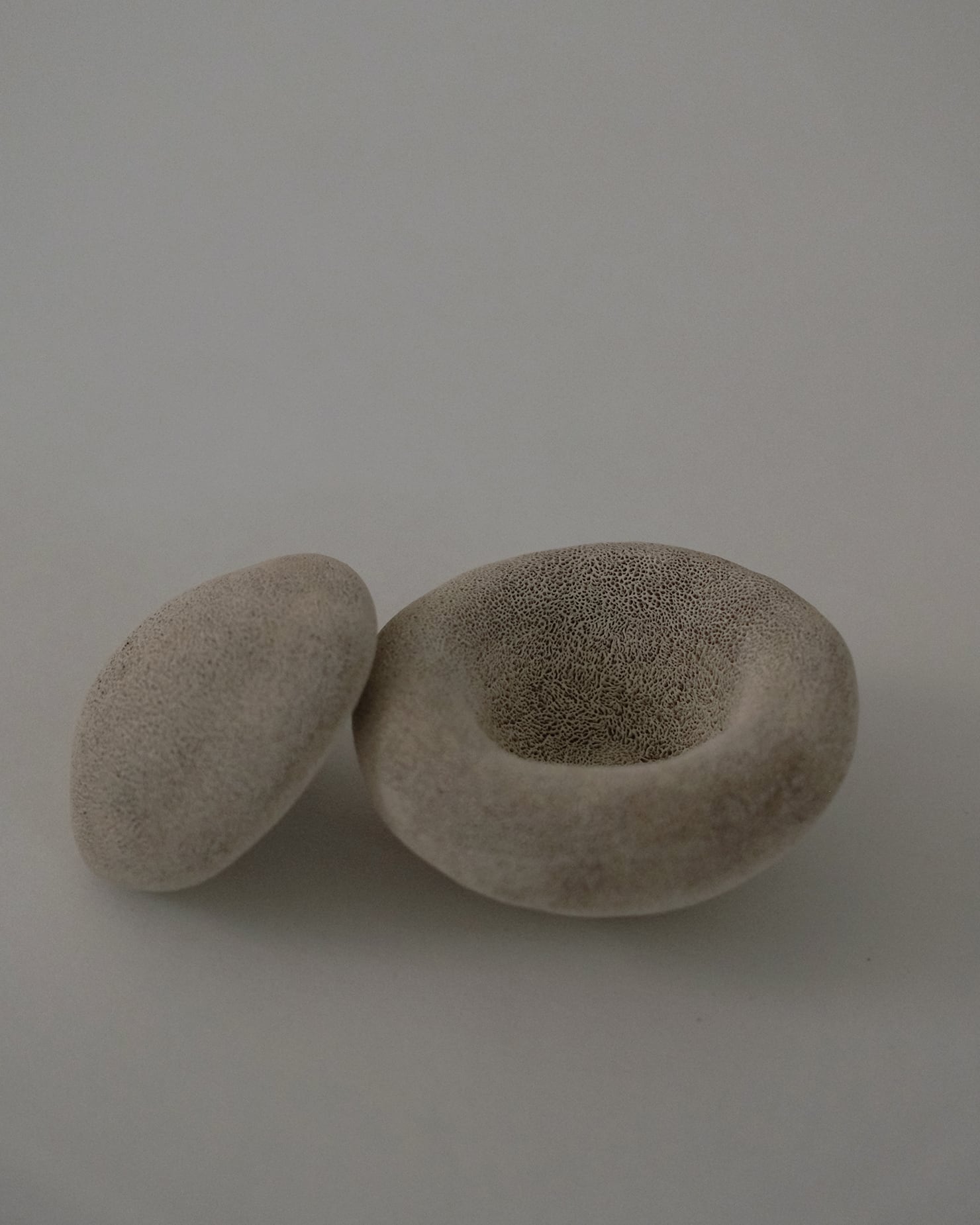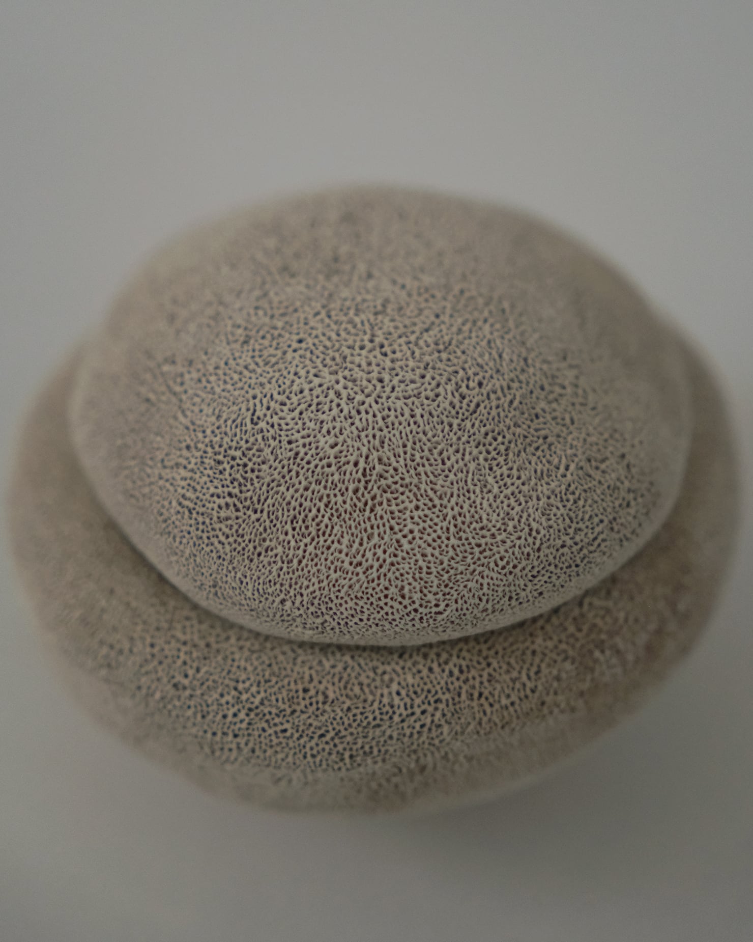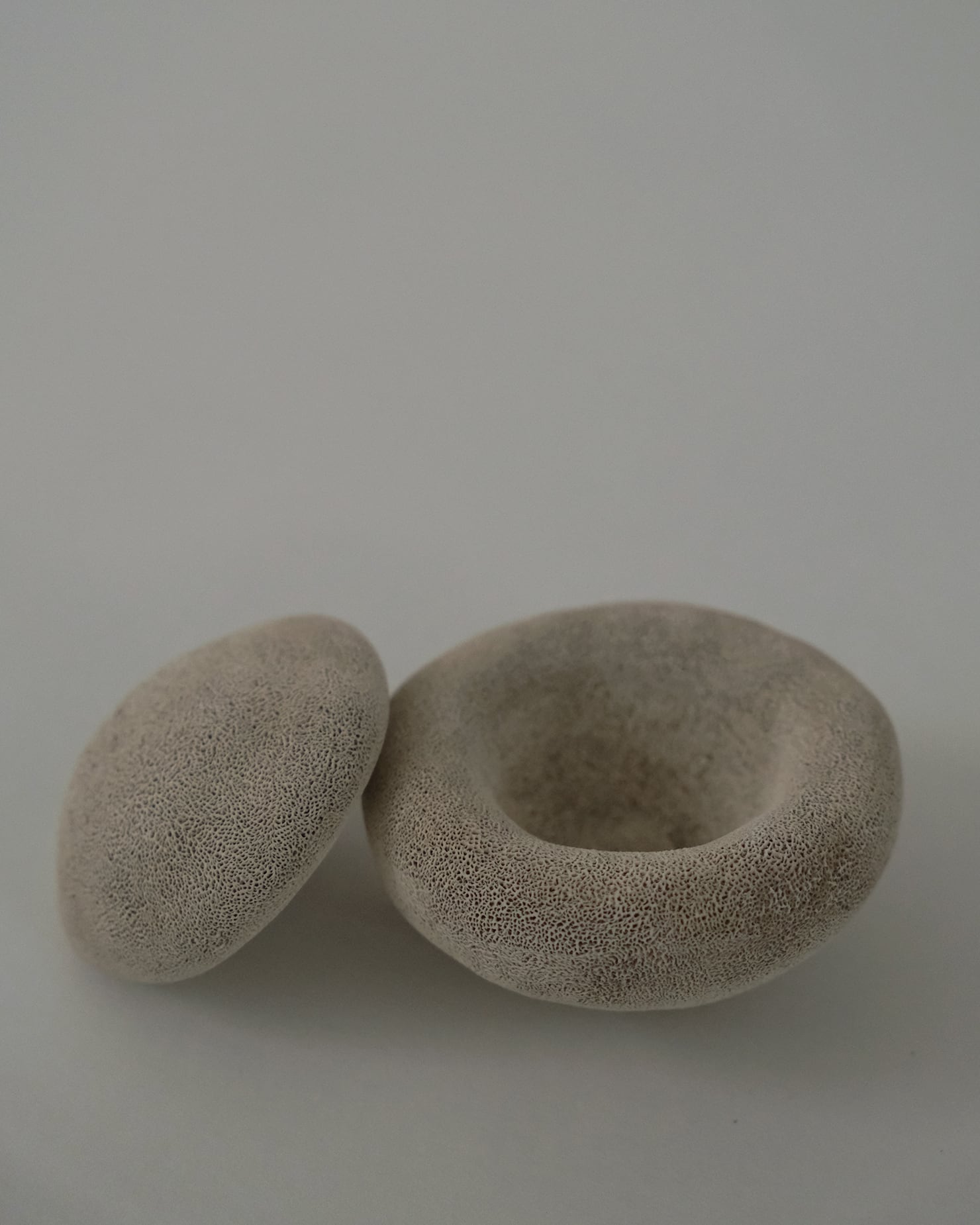 自然物と人工物の間ような模様を一点一点手で作り、唯一無二の表現を陶芸に落とし込む植田佳奈による、はじめての「蓋物」作品です。