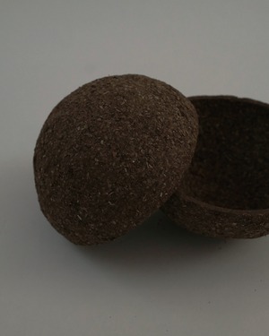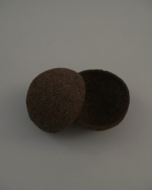 落ち葉と膠だけで作られたこの匣は、経年によって形も少しずつ変わるかもしれません。蓋もしまったりしまらなかったり、それも楽しみとしてお手元に置いてください。