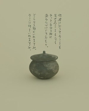 八人の作家がさまざまに解釈し、陶、落ち葉、七宝、紙など、さまざまな素材で作られた「さいごまで捨てられなかったものを入れる匣」。