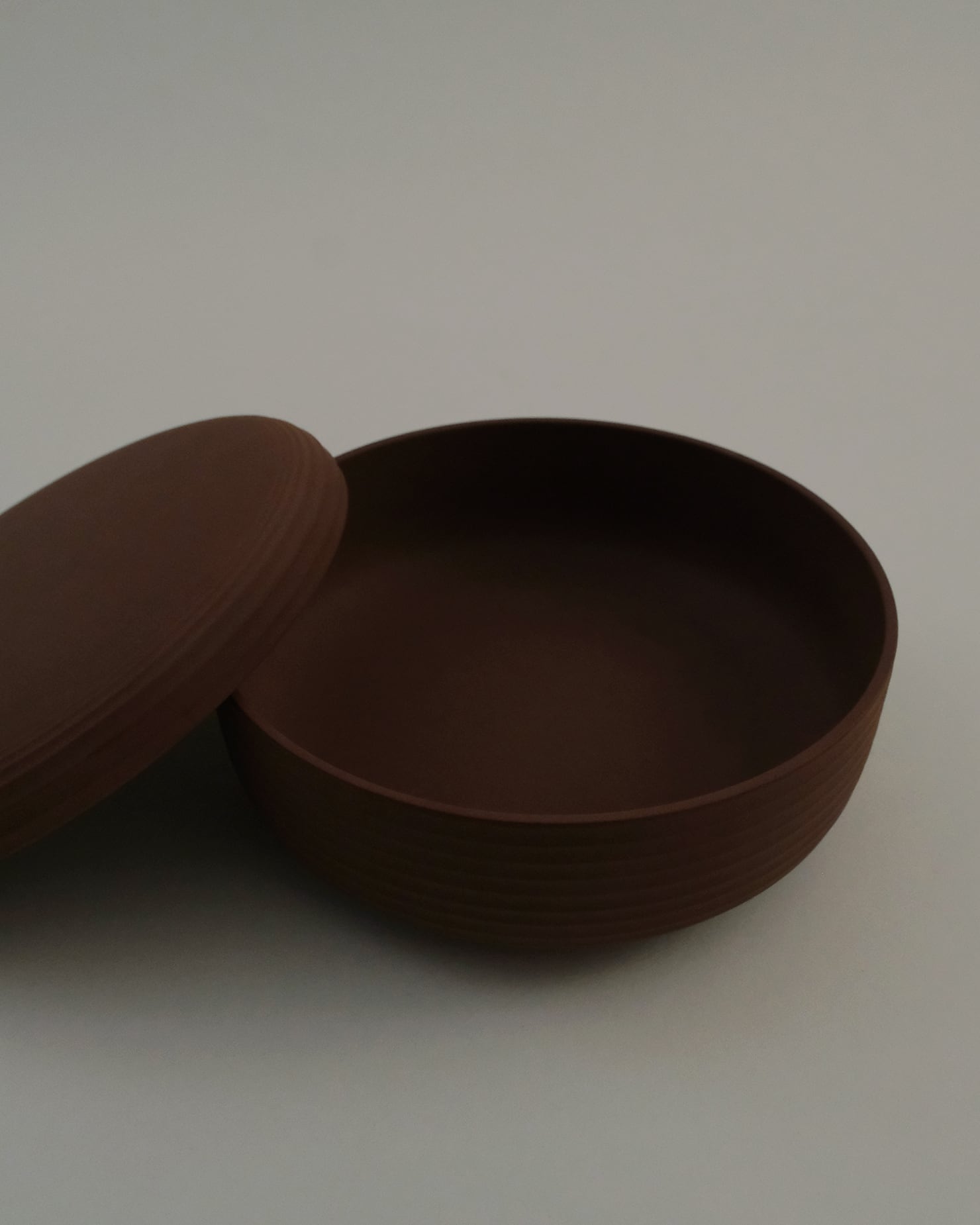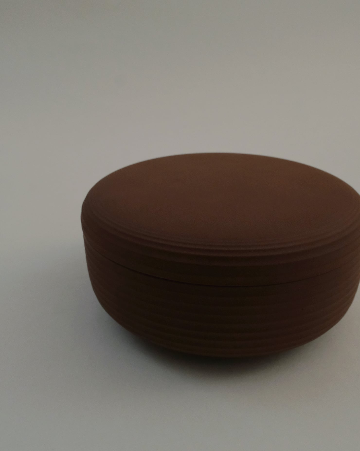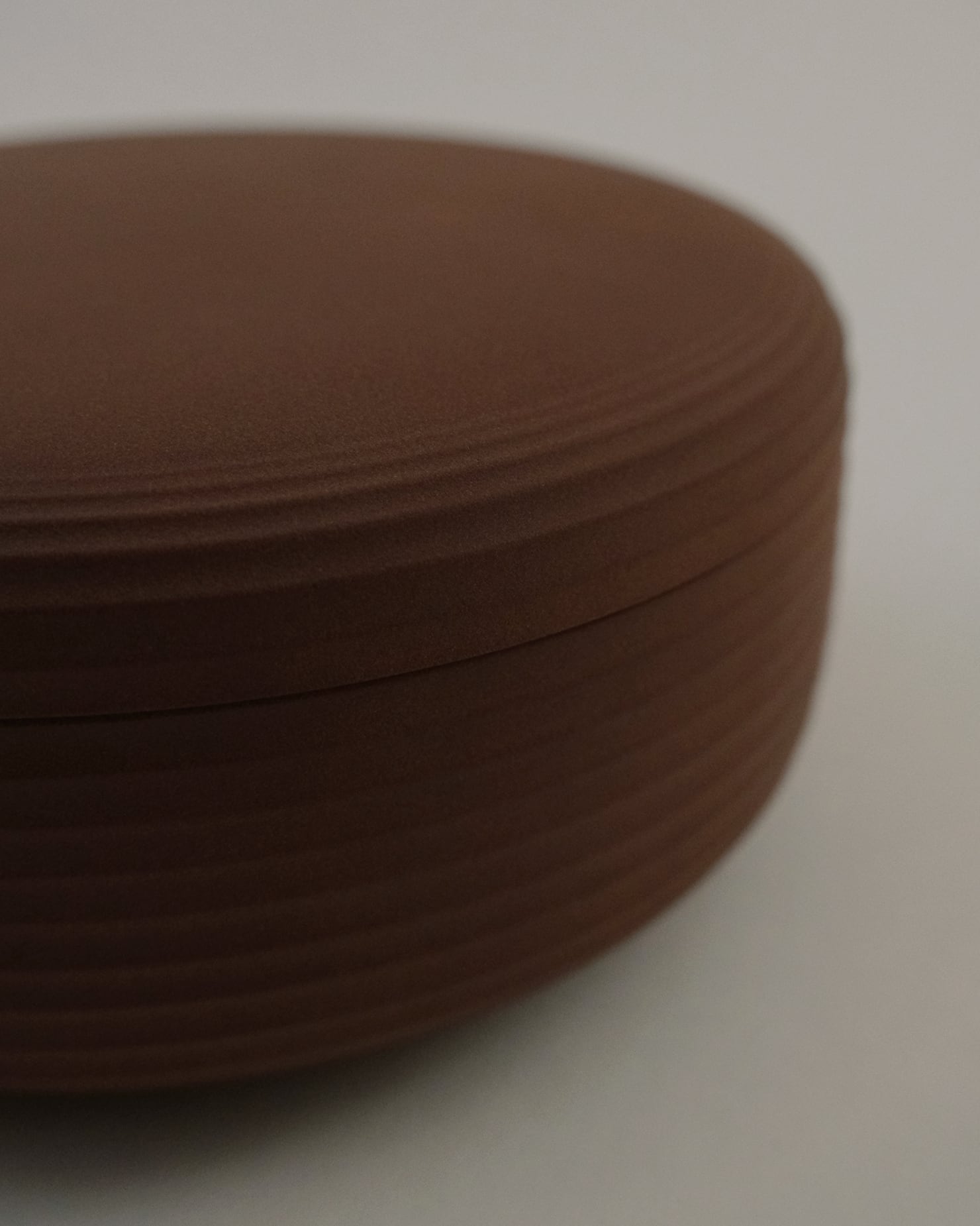 箱の高さを低くしたり、裏面を平らにしたり、高台や持ち手を削ったりなど、「艶を落とす、質量が少なくなる、小さくなる」という表現をあわいもん二〇二五の主題「老」と重ね制作された作品。おそらくこの世界に一点しかない箱物です。