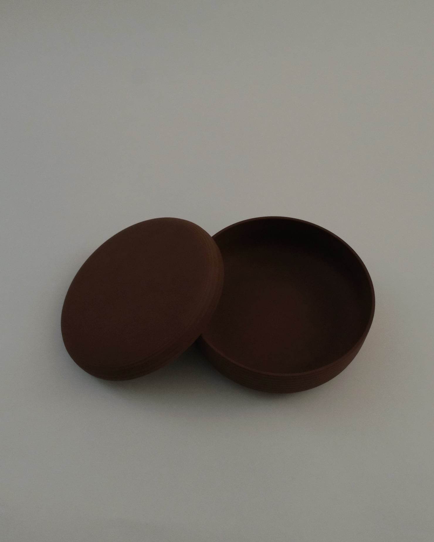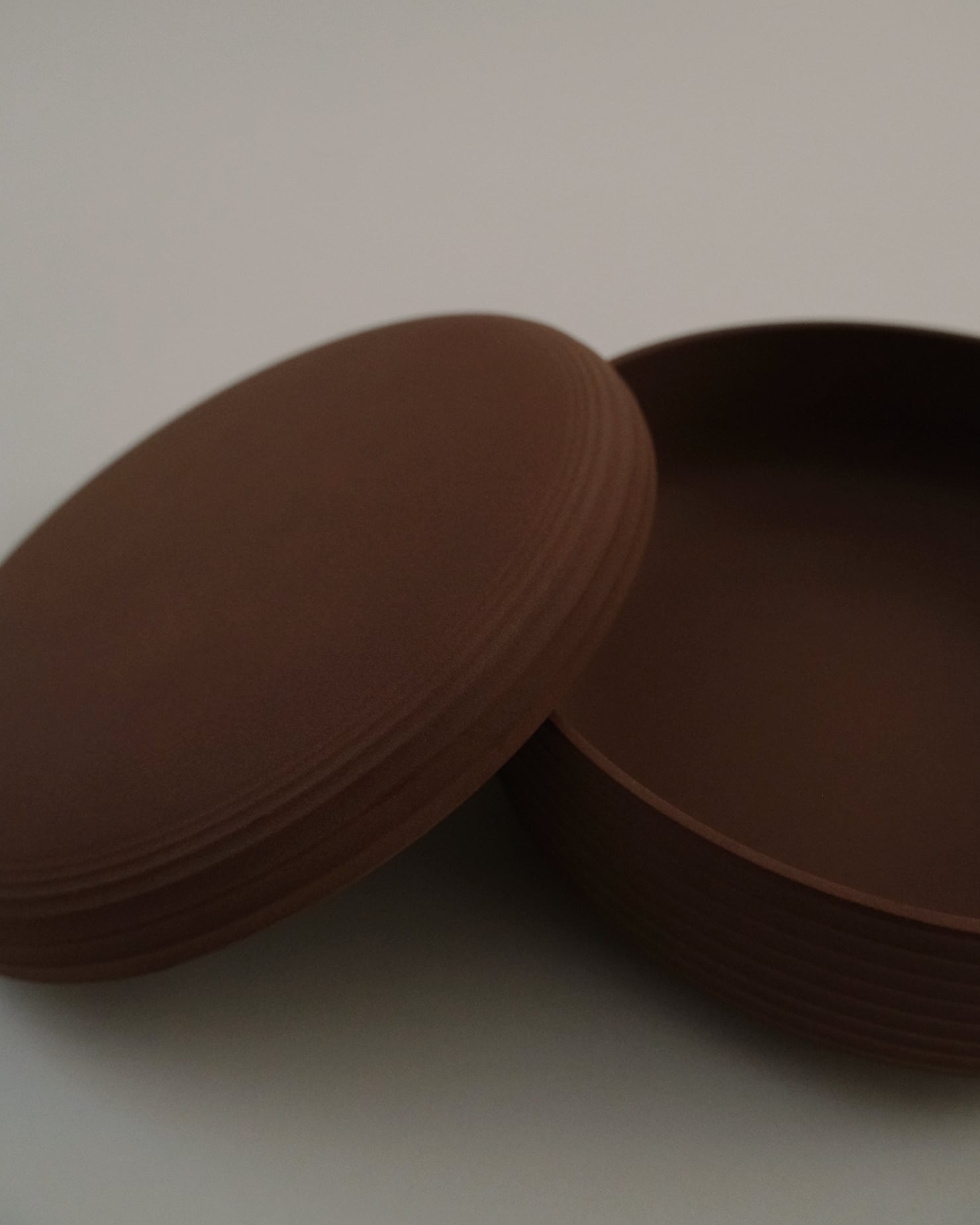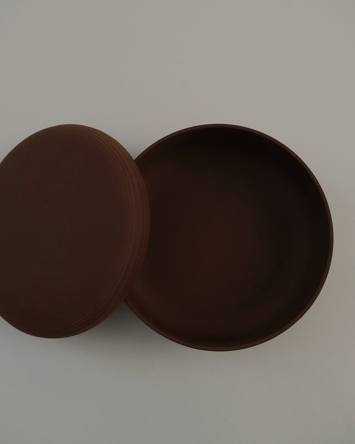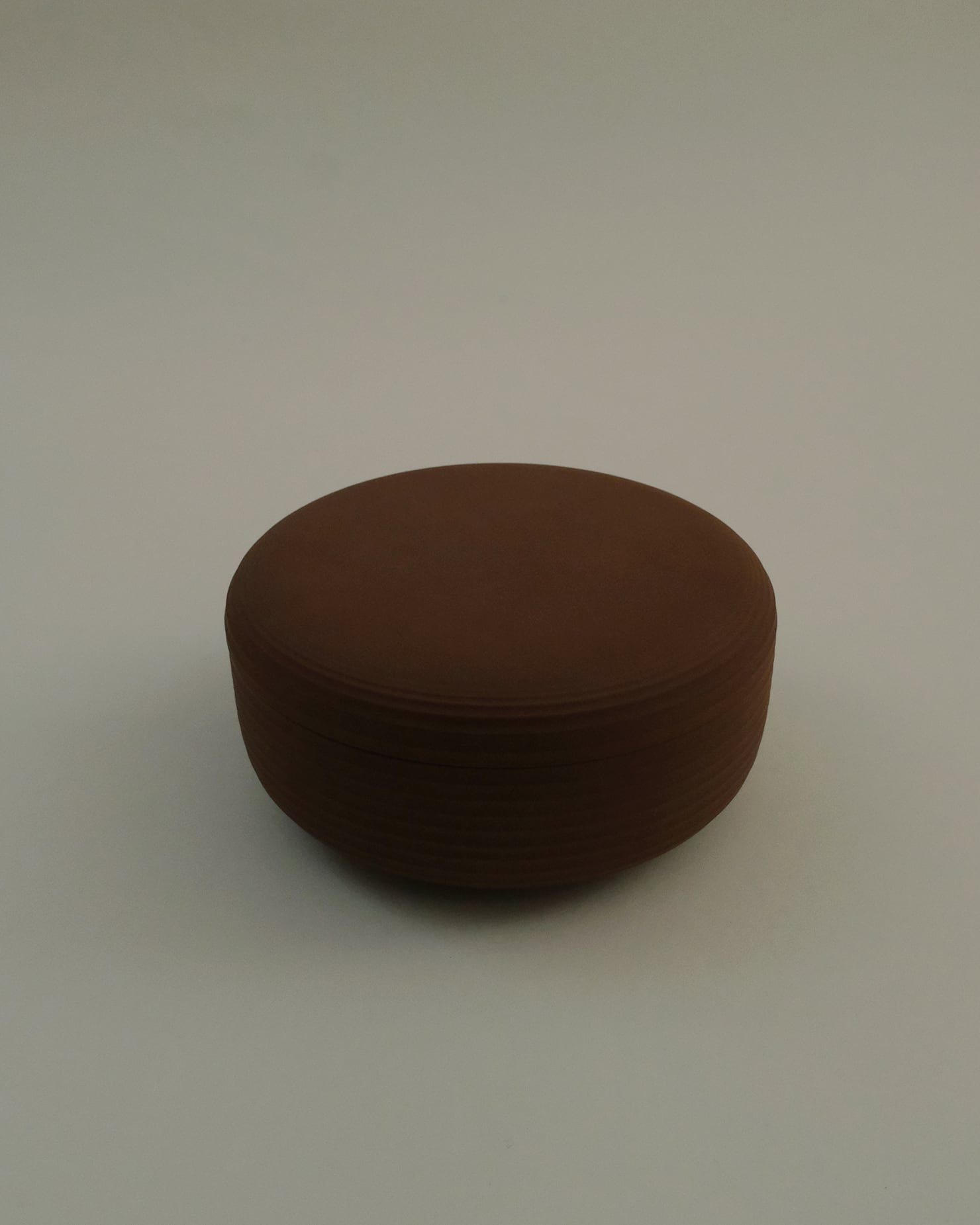 箱の高さを低くしたり、裏面を平らにしたり、高台や持ち手を削ったりなど、「艶を落とす、質量が少なくなる、小さくなる」という表現をあわいもん二〇二五の主題「老」と重ね制作された作品。おそらくこの世界に一点しかない箱物です。