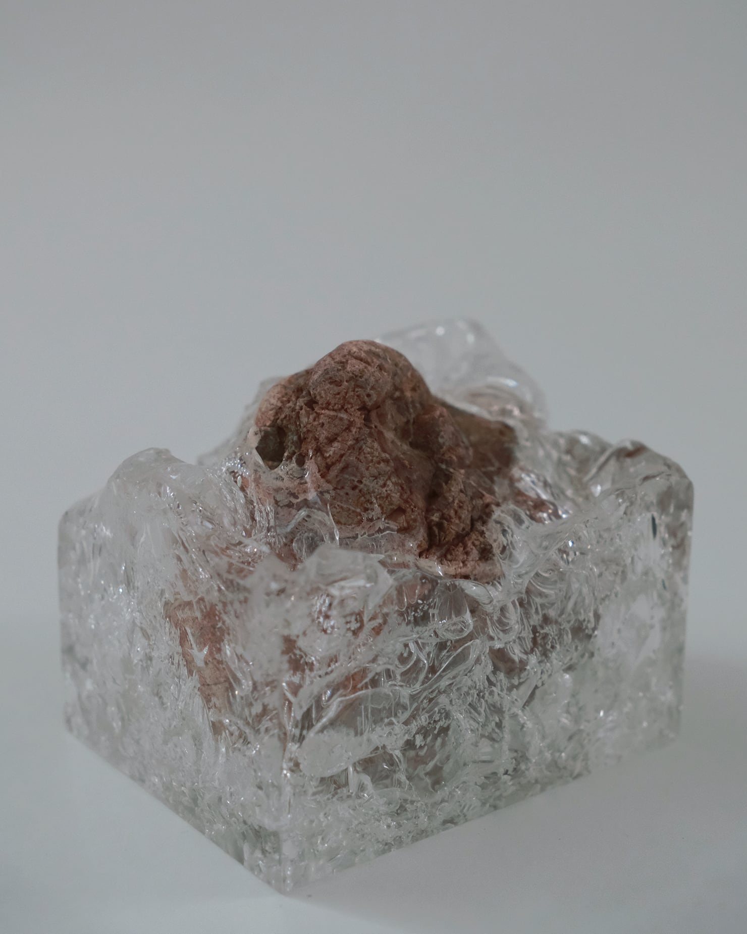 まるで水のように見えるのはアクリル。アクリルを水に見紛うのは、気泡を封じ有機的な形へ硬化させたことも作用しているのだと思います。