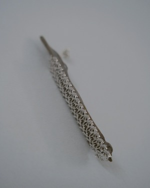 流木が抱える莫大な記憶や痕跡を想像しながら編むようにして重ねられた銀の装飾は、その技術力の高さが人工物の領域を超越し、自然物への交わりを許すようにも感じさせます。