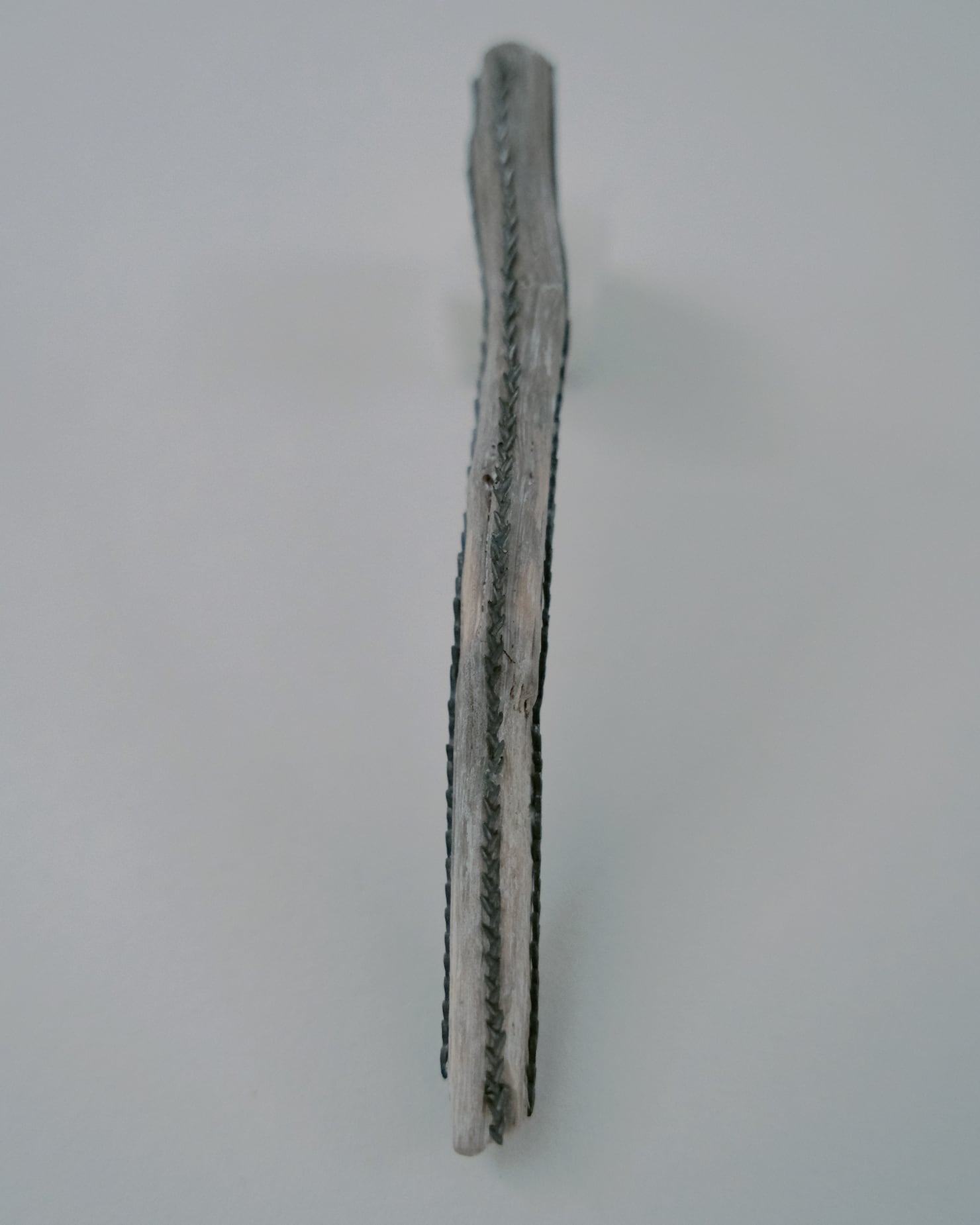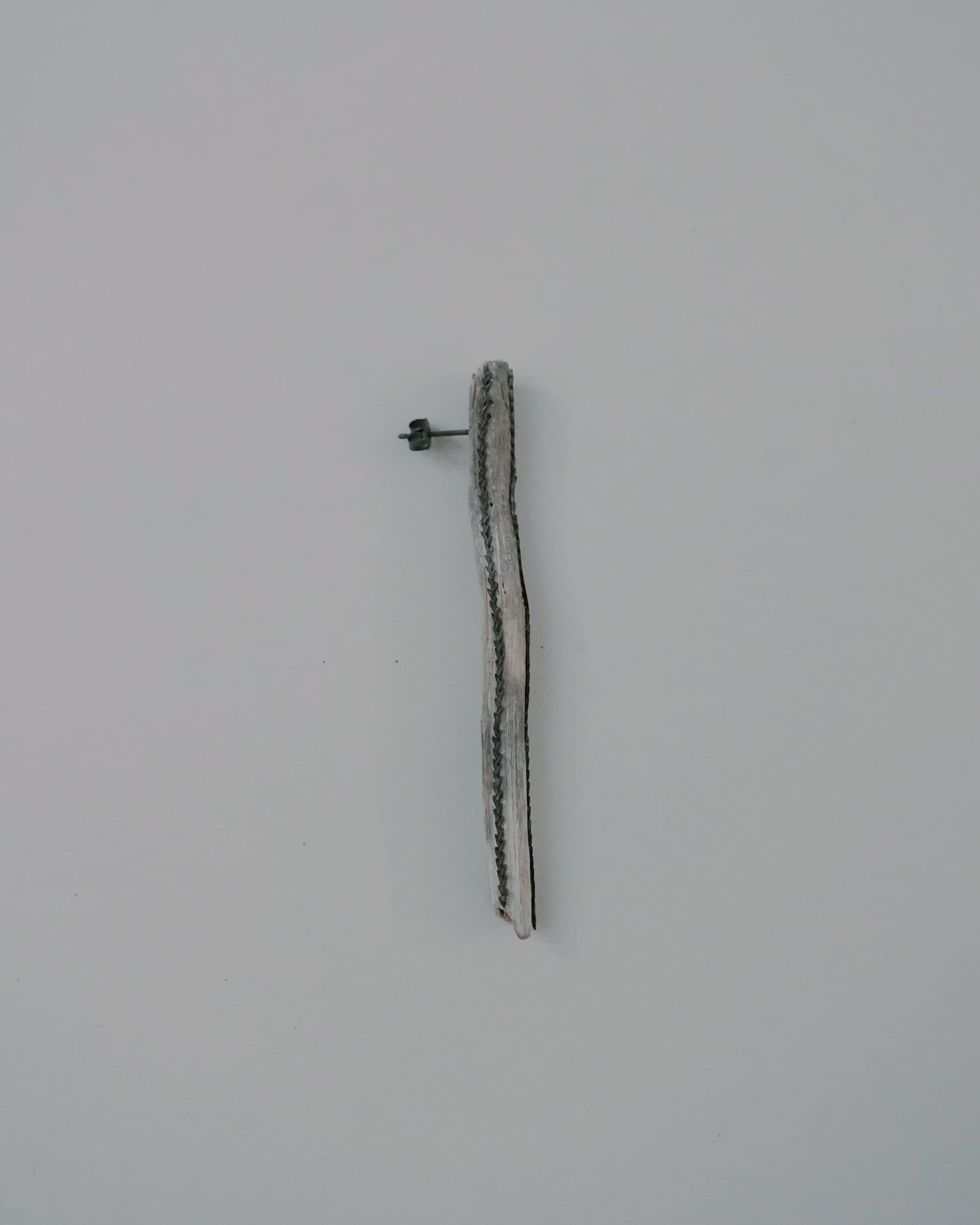 流木が抱える莫大な記憶や痕跡を想像しながら編むようにして重ねられた銀の装飾は、その技術力の高さが人工物の領域を超越し、自然物への交わりを許すようにも感じさせます。