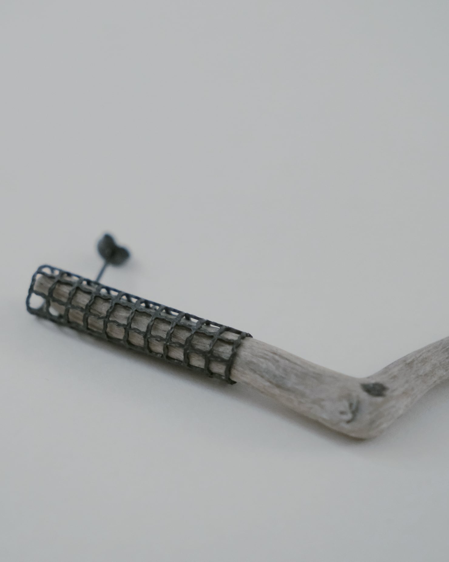 流木が抱える莫大な記憶や痕跡を想像しながら編むようにして重ねられた銀の装飾は、その技術力の高さが人工物の領域を超越し、自然物への交わりを許すようにも感じさせます。