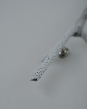 無くなった枝先の形を想像して、継ぐようにして七宝で形作られた装飾が流木に新しい息吹を与えます。その継ぎ目は美しいグラデーションとして表現され、継がれた七宝の中が空洞となっていることも必見。胸元に飾っても、壁にかけても、唯一無二の存在として静かに輝きます。