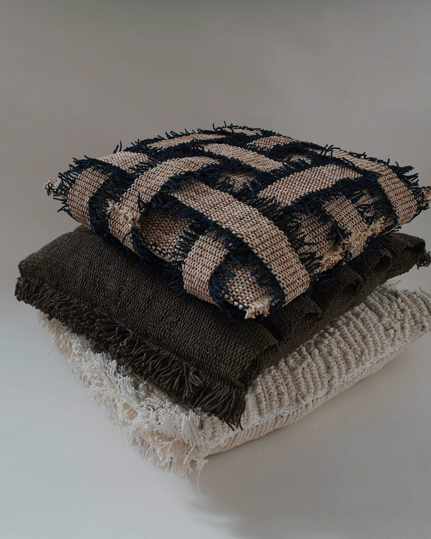 ※織座すのシリーズは、道具としての機能性よりも置物としての存在を優先させたプロダクトです。長く使っていくうちに色移りや色落ちの可能性もあるかもしれませんが、その旨ご理解いただいた上でのご使用をお願いいたします。また、布地のお洗濯はできませんので、濡れ布巾で拭く等方法でお手入れしてください。