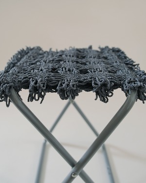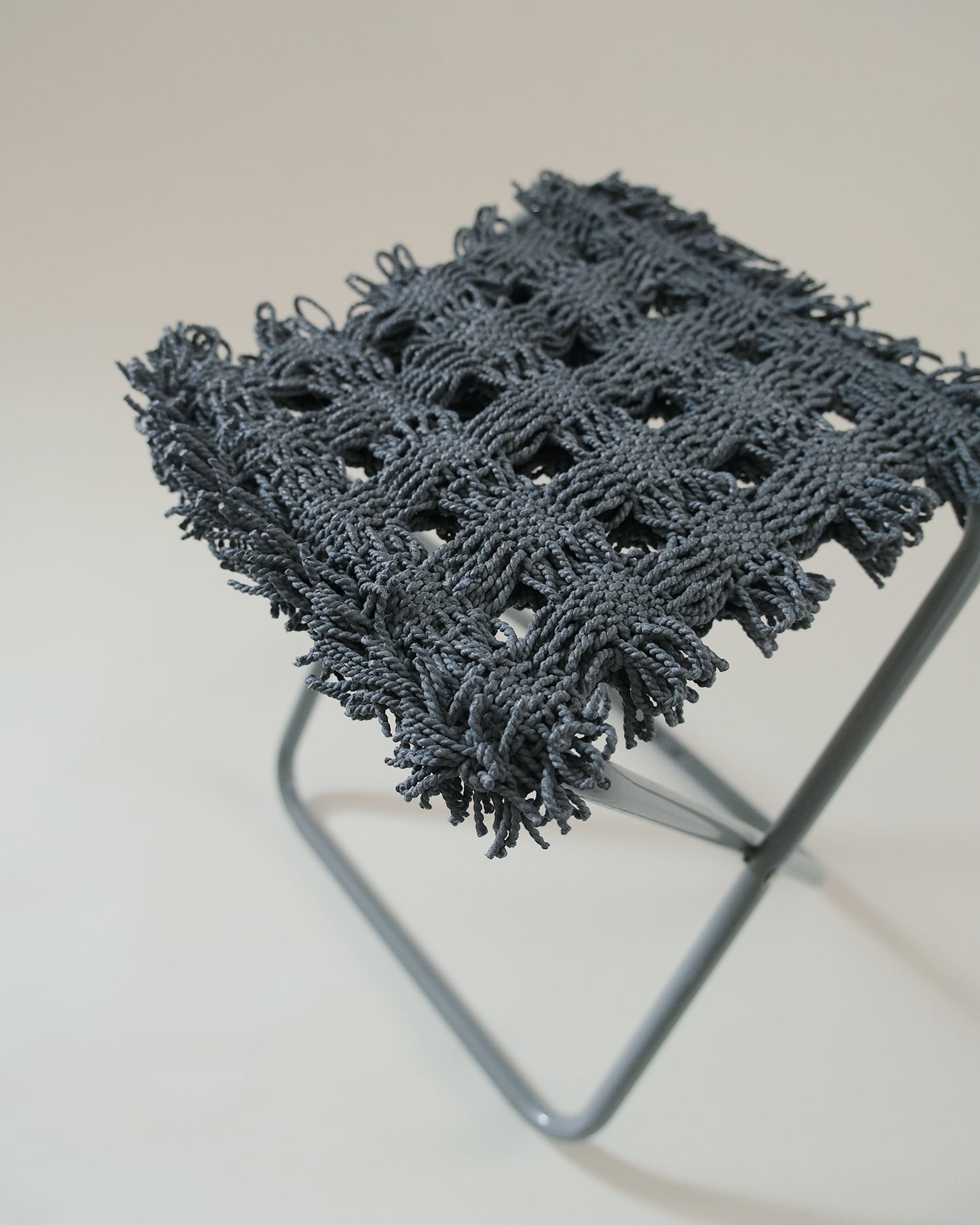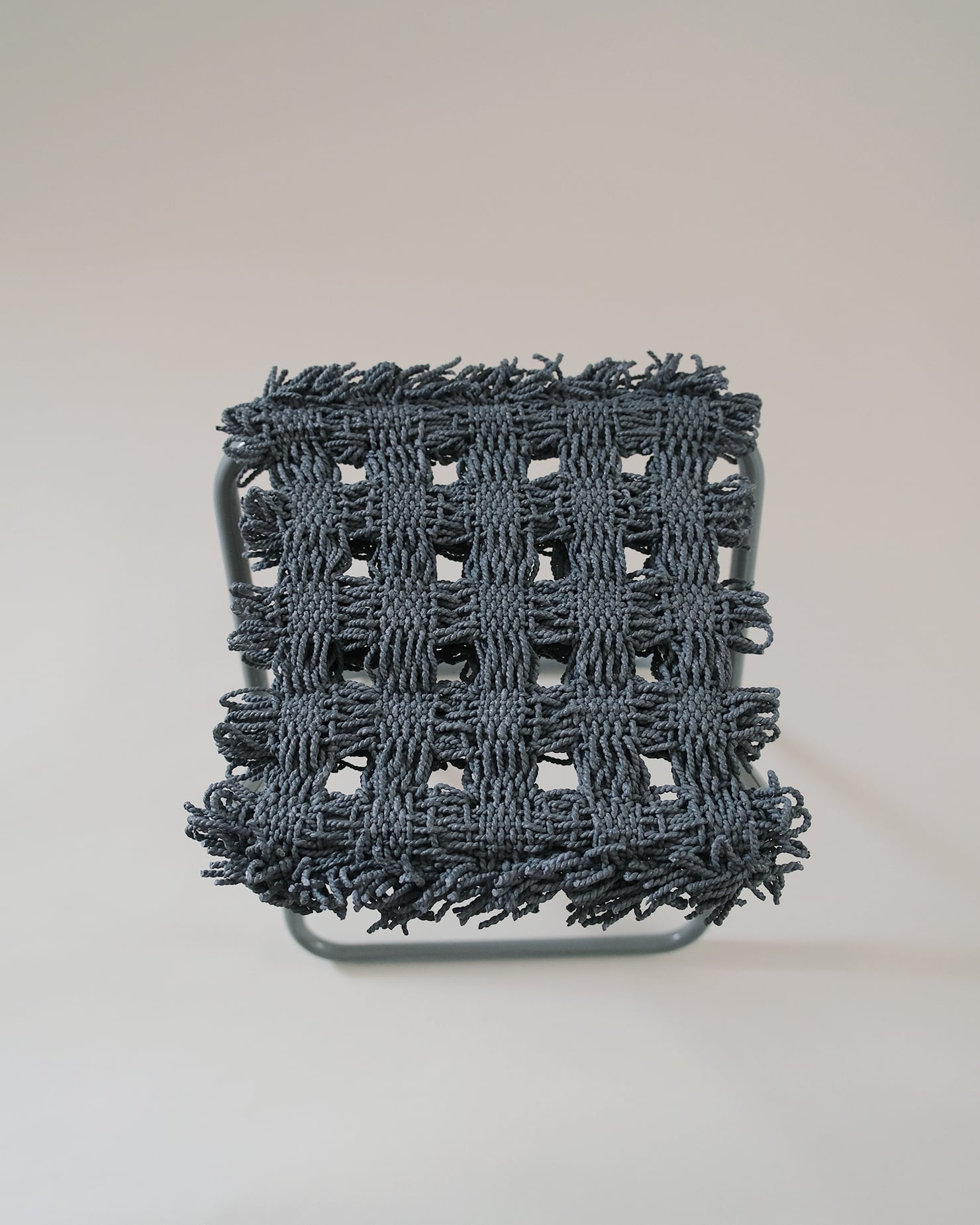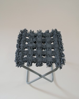 あわいもんが収集した古家具のフレームに、テキスタイルアーティストの肥田野優希が座面を織ることで新しく生まれ変わった、一点もののスツール。