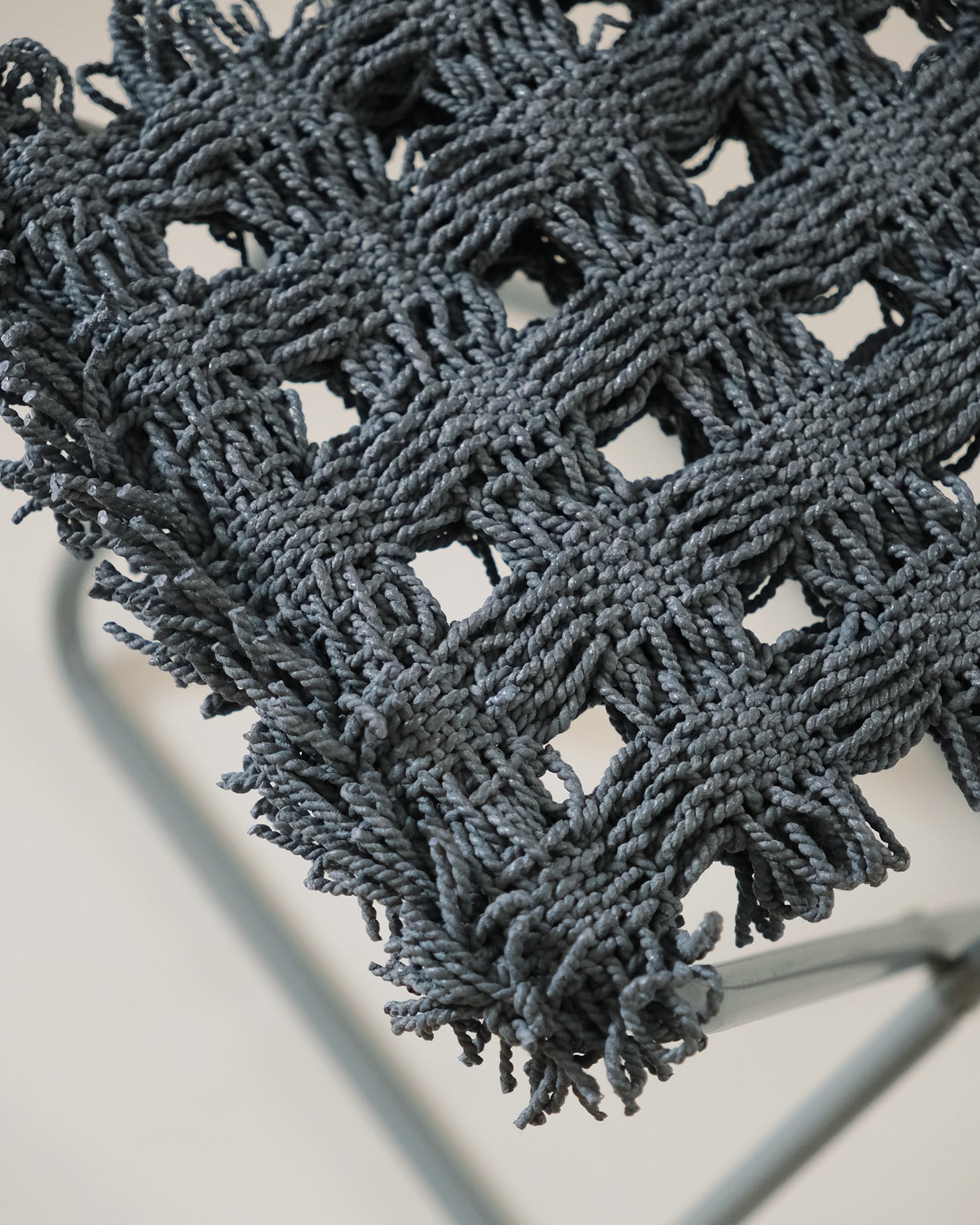老いて朽ちた椅子の座面を仕立て直し、新しく座る景色をたのしむプロジェクト「織座す(おはす)」。あわいもんが収集した朽ちた古家具にテキスタイルアーティストの肥田野優希が“座”を織り重ねてあたらしい“椅子”をつくる取り組みです。