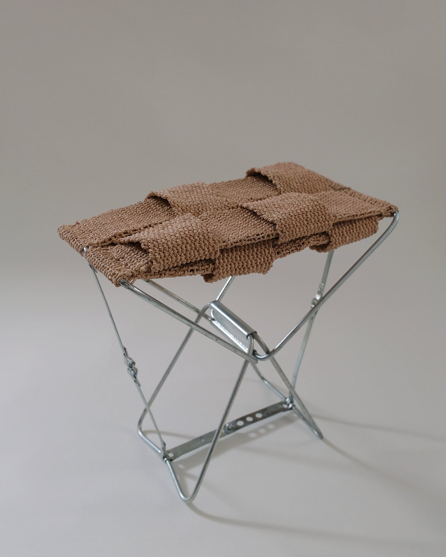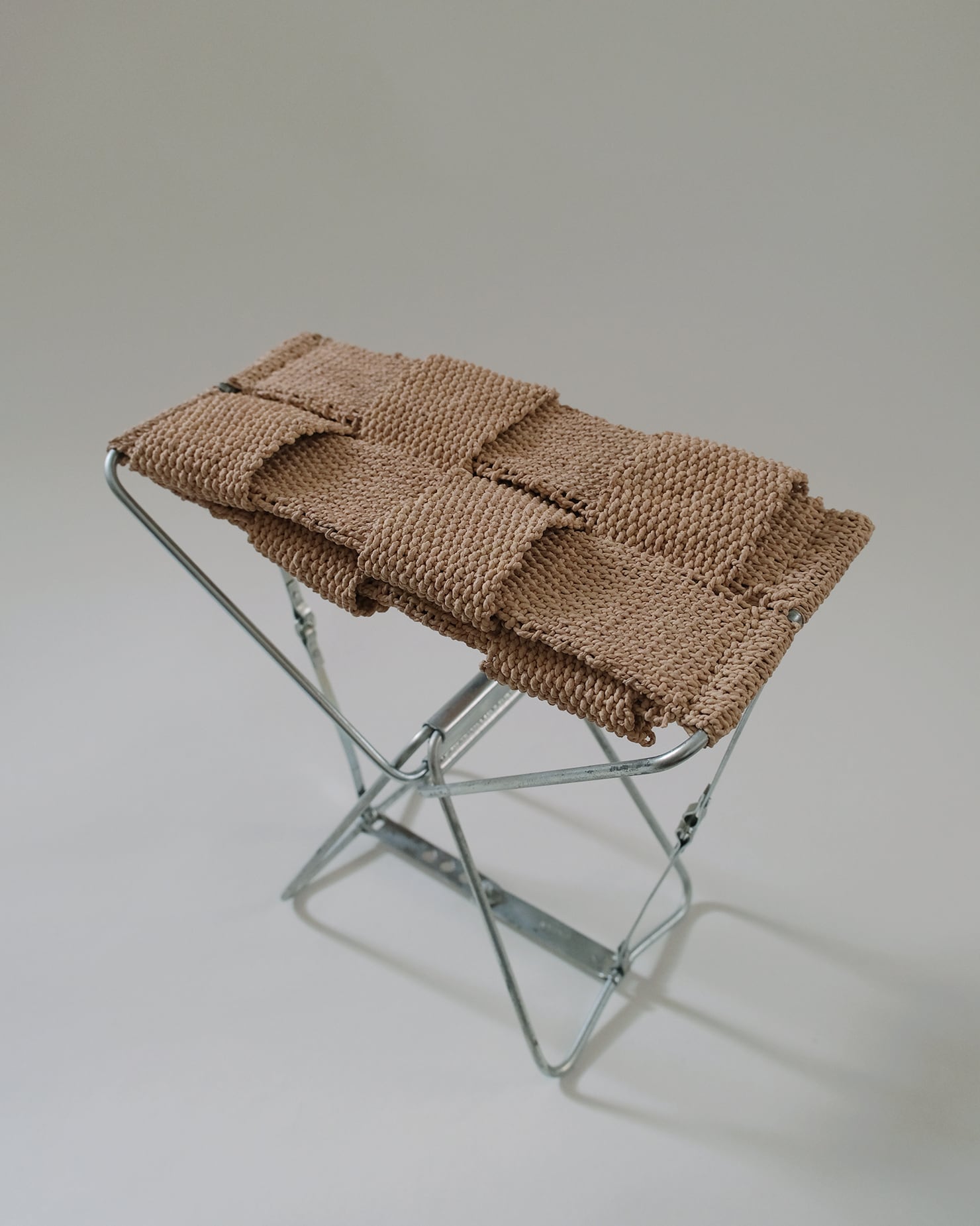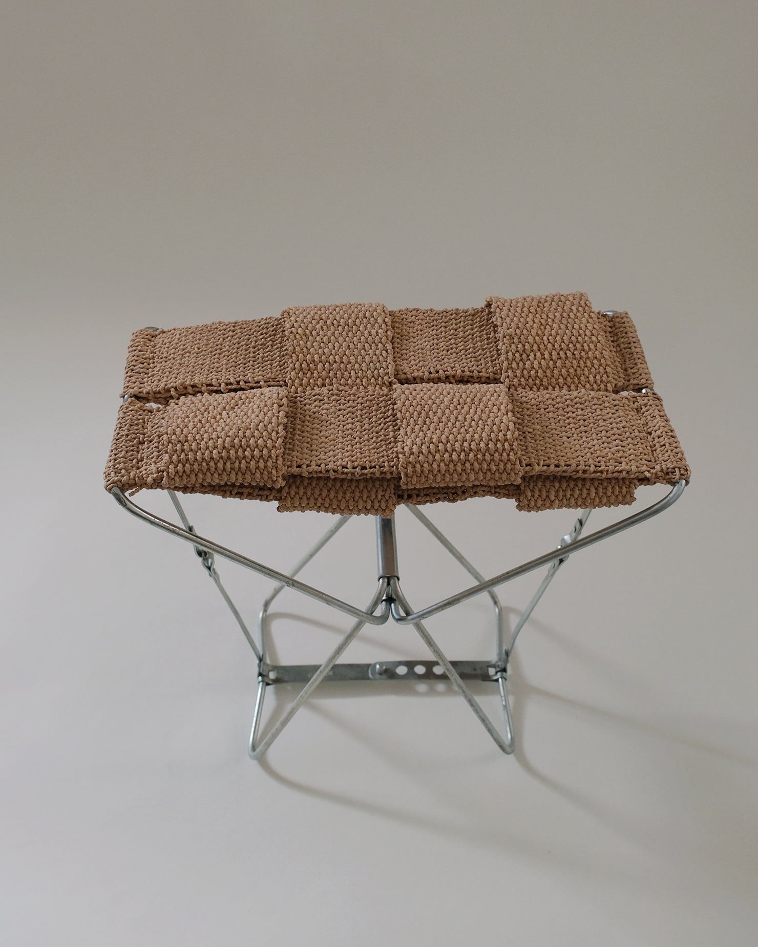 あわいもんが収集した古家具のフレームに、テキスタイルアーティストの肥田野優希が座面を織ることで新しく生まれ変わった、一点もののスツール。