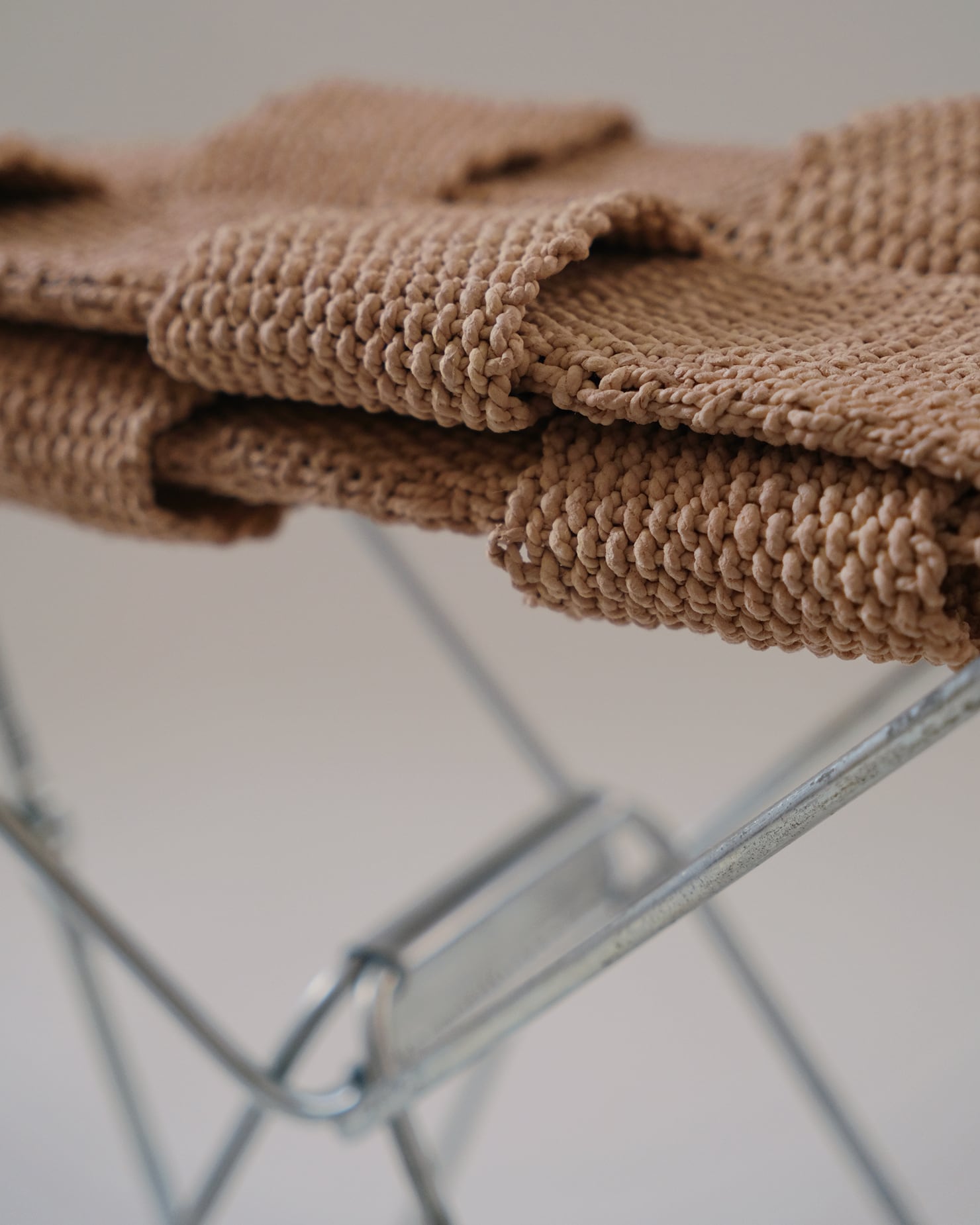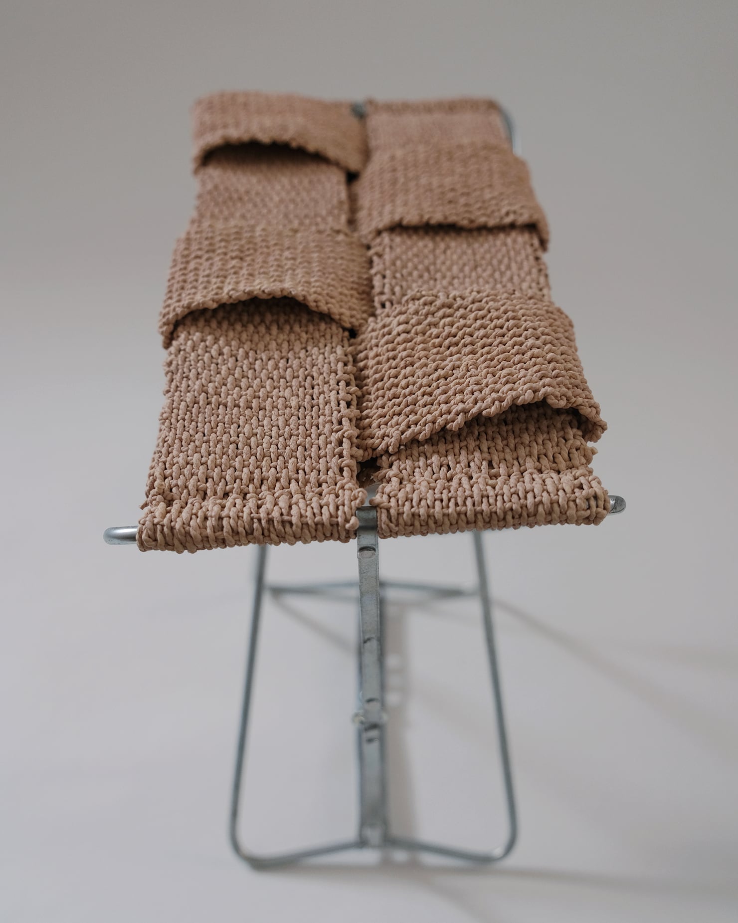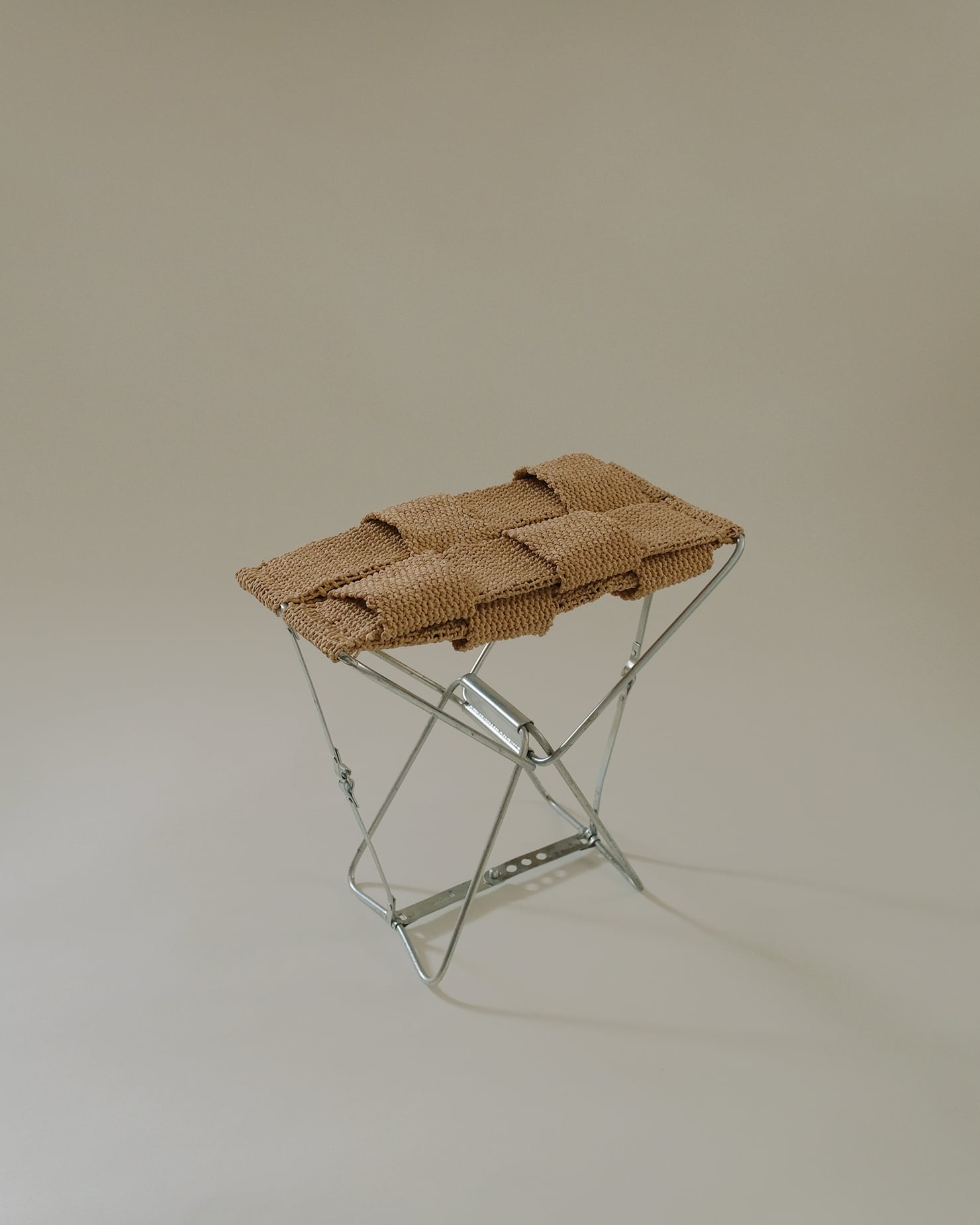 あわいもんが収集した古家具のフレームに、テキスタイルアーティストの肥田野優希が座面を織ることで新しく生まれ変わった、一点もののスツール。