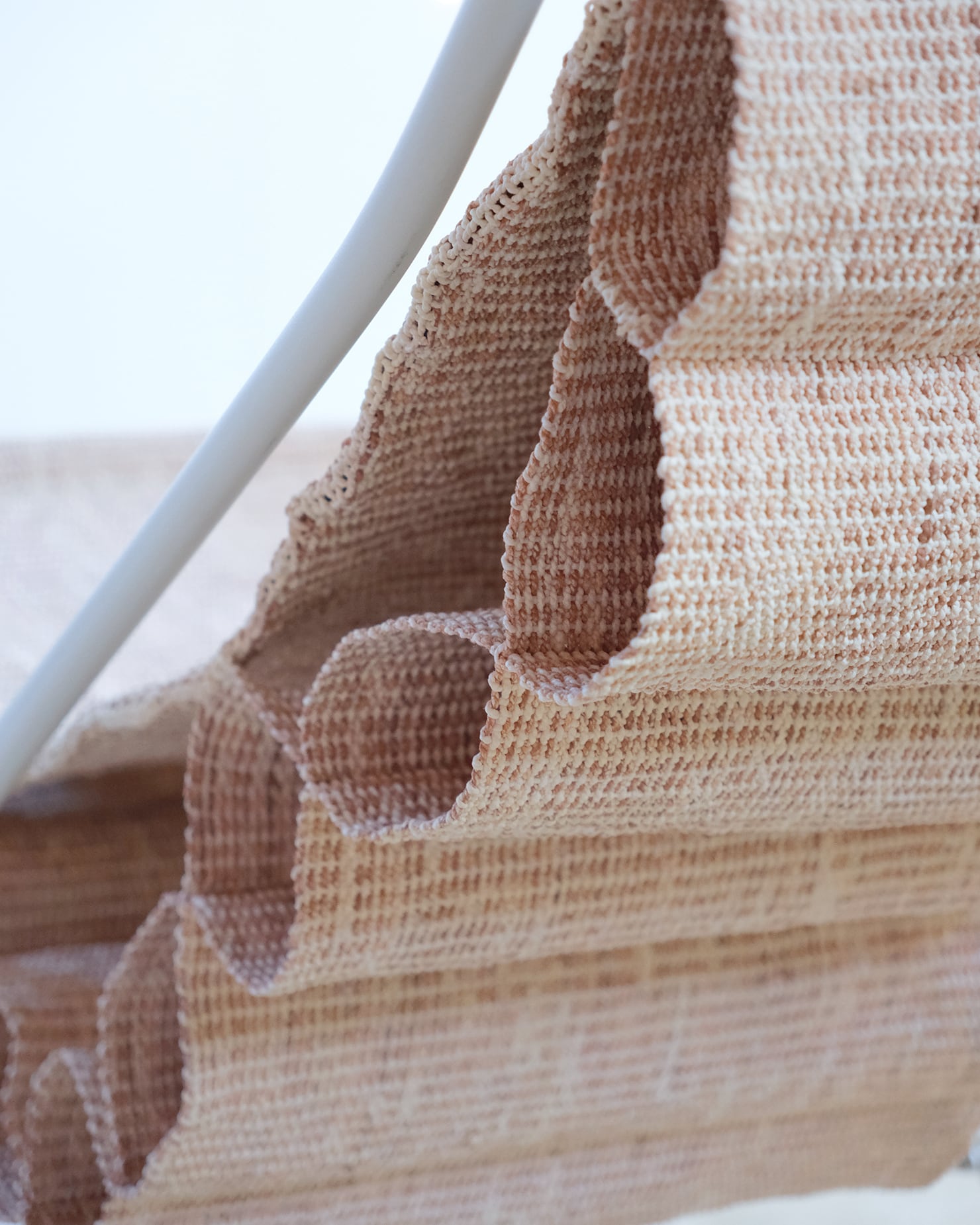 剛性の中に柔軟性を残した生地が作る唯一無二の素材感。私たちがイメージする柔らかくて軽くしなやかな布地の個性を裏切る面白さをぜひ体感ください。