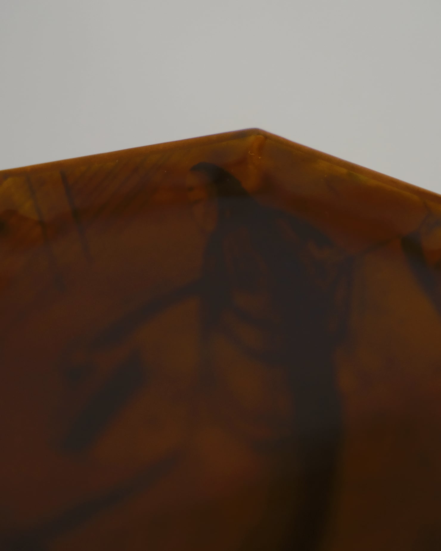 うつくしい意匠が漆の向こうに覗くのは、福井県鯖江市の塗師の手で塗られた「透漆」の手法によるものです。