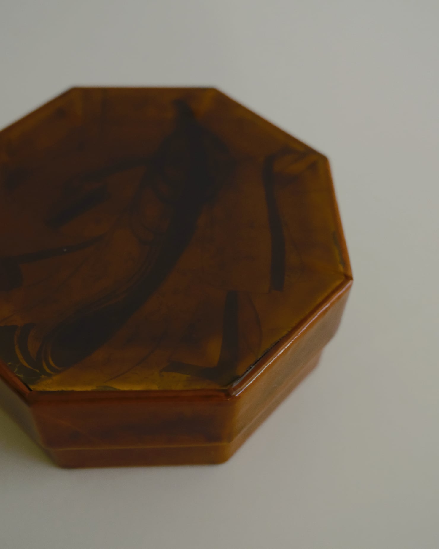 紙や経木のような、少し頼りない素材の箱も、漆を纏うと、箱としての強度や保存性が高くなることに面白さと美しさを感じます。